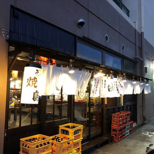 焼き鳥とモツ煮を頼んで美味しかったのですが、後ろの席でラーメンが...