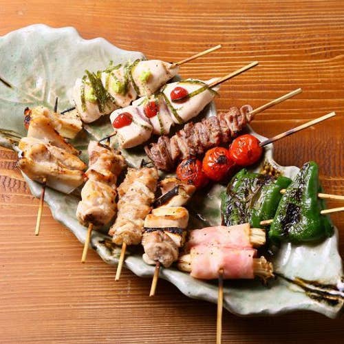 備長炭でじっくり焼き上げる本格焼き鳥は、ひたち鶏やつくば鶏など鮮度抜群の地鶏を使用し、手串で一本一本丁寧に仕込みます。
